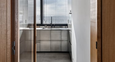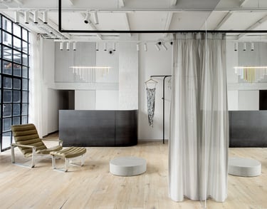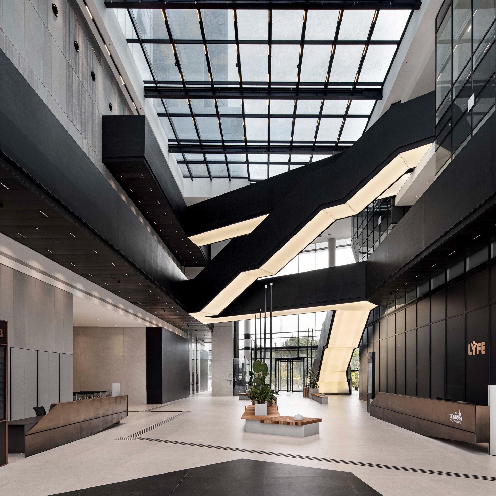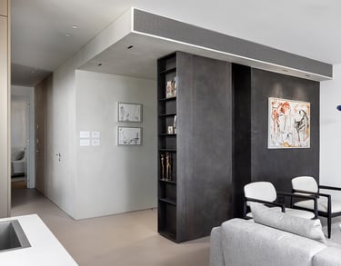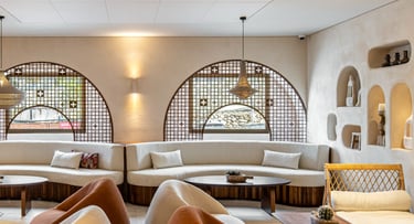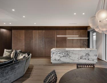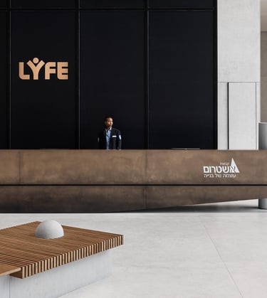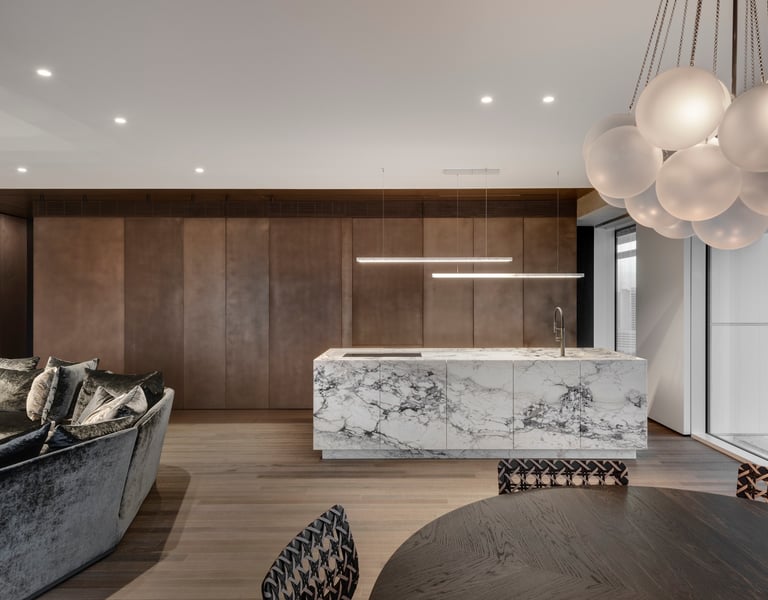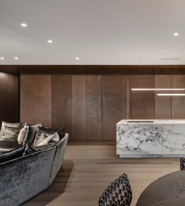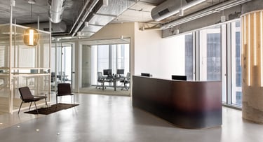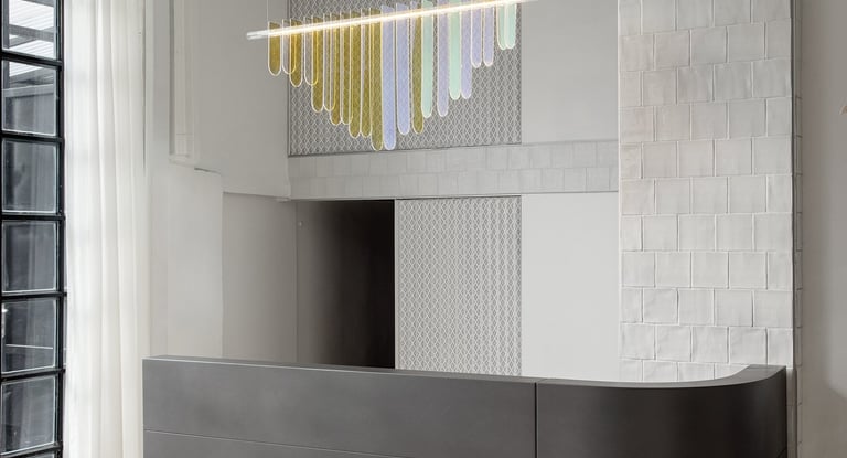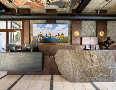 Copper,patinated applied on reception desks and elements \ liquid metal