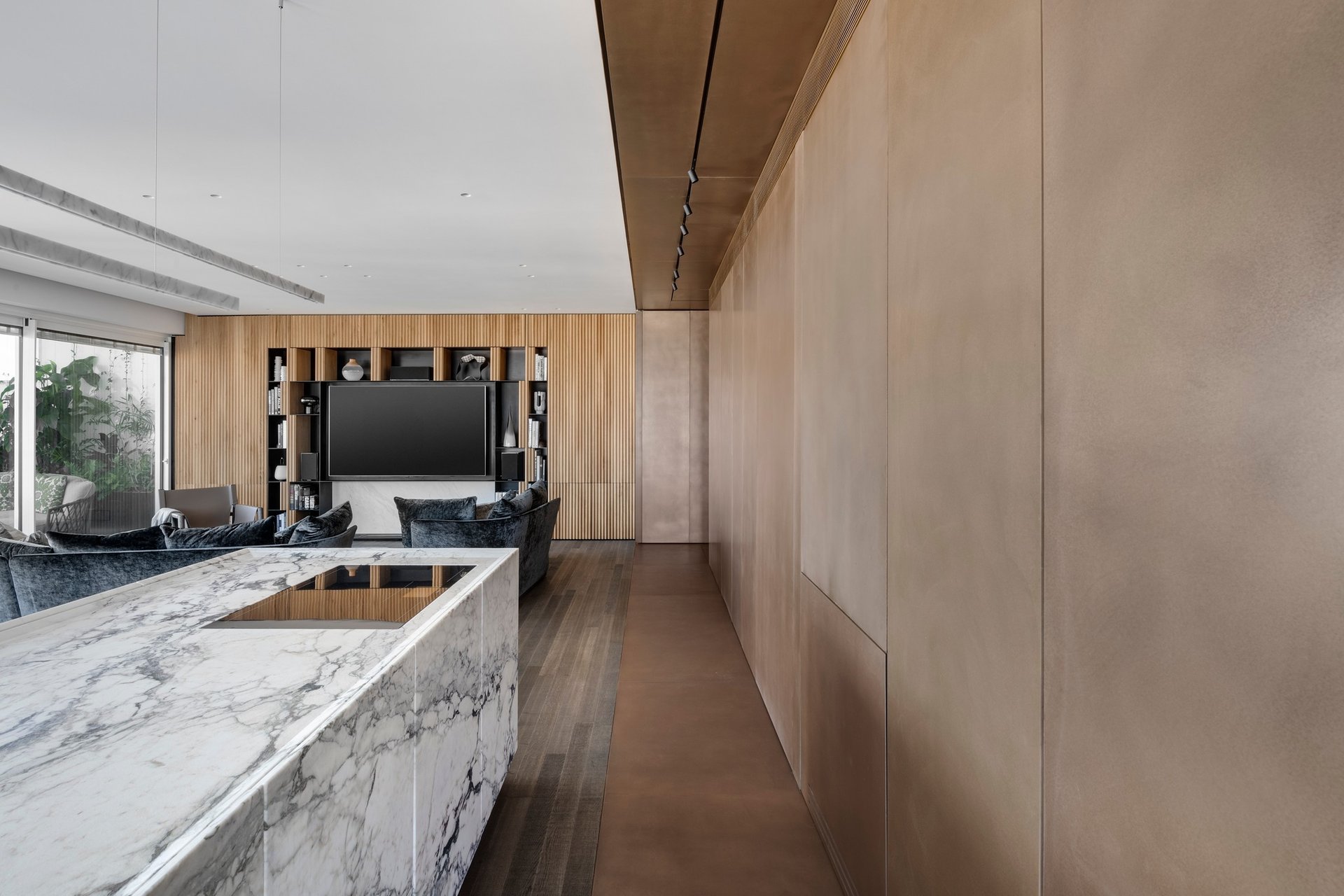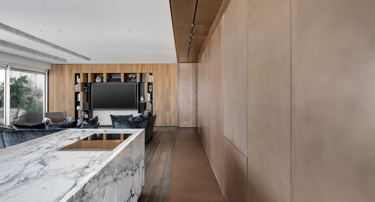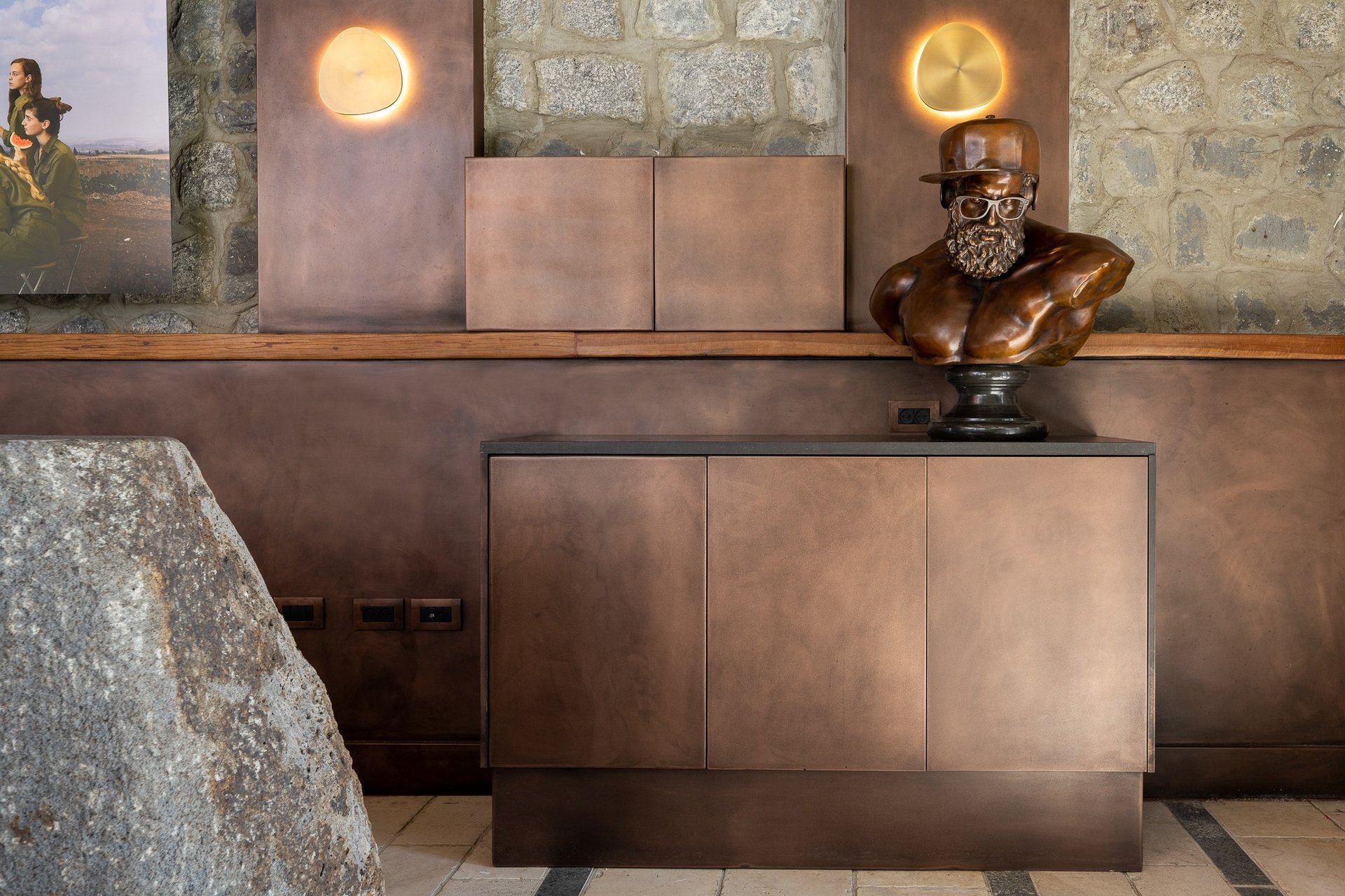 Bronze on facades for walls, floors and furniture \ liquid metal