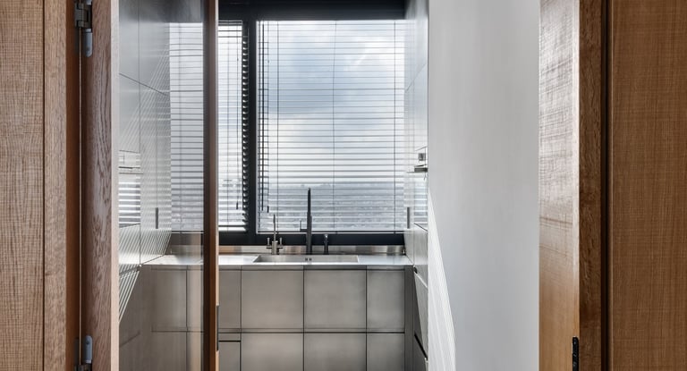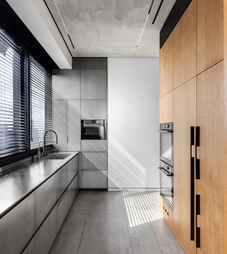 Zinc, polished on cabinetry \ liquid metal